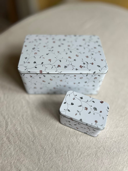 Plåtburk Blommor Vit, Set om 2