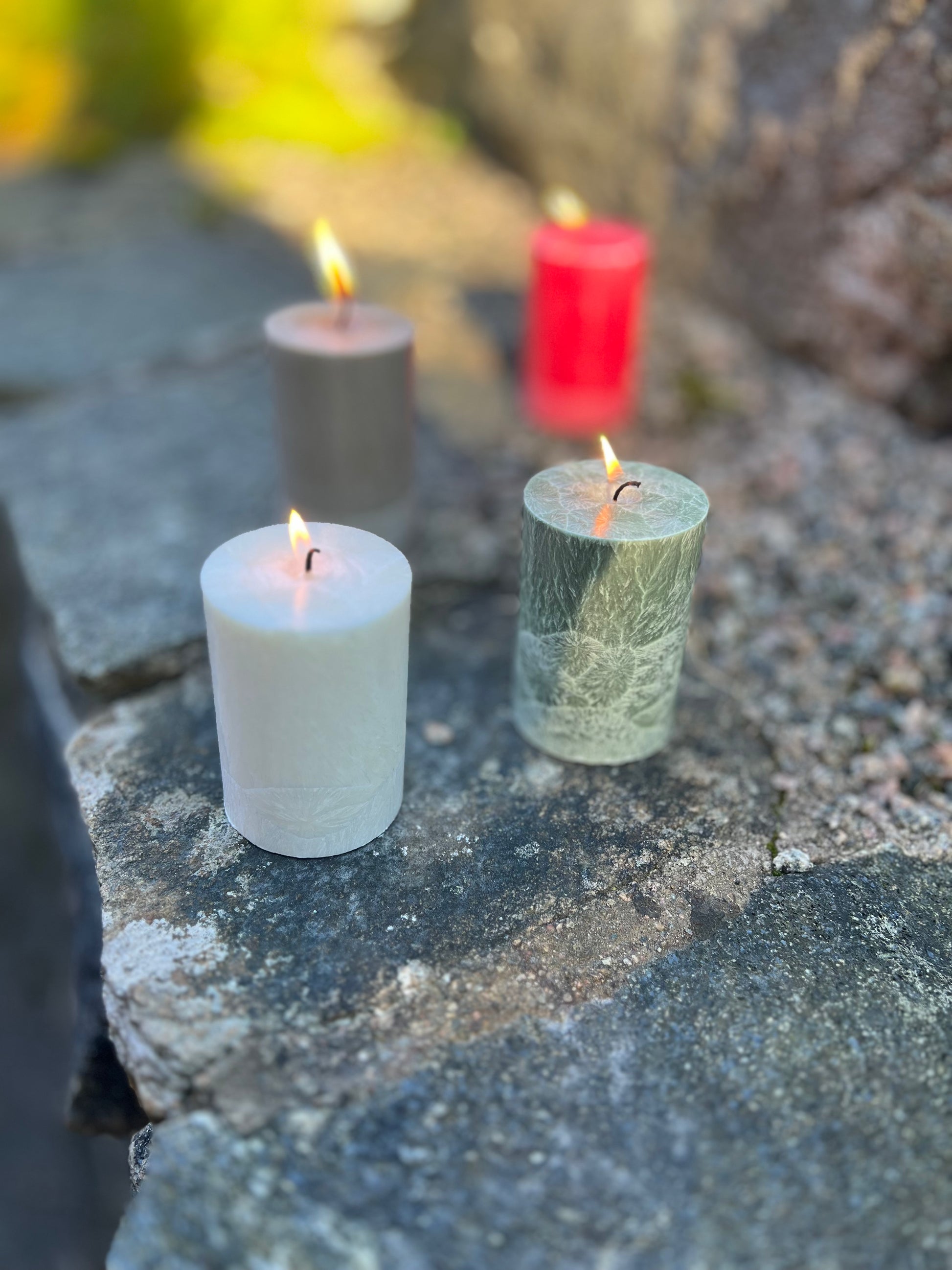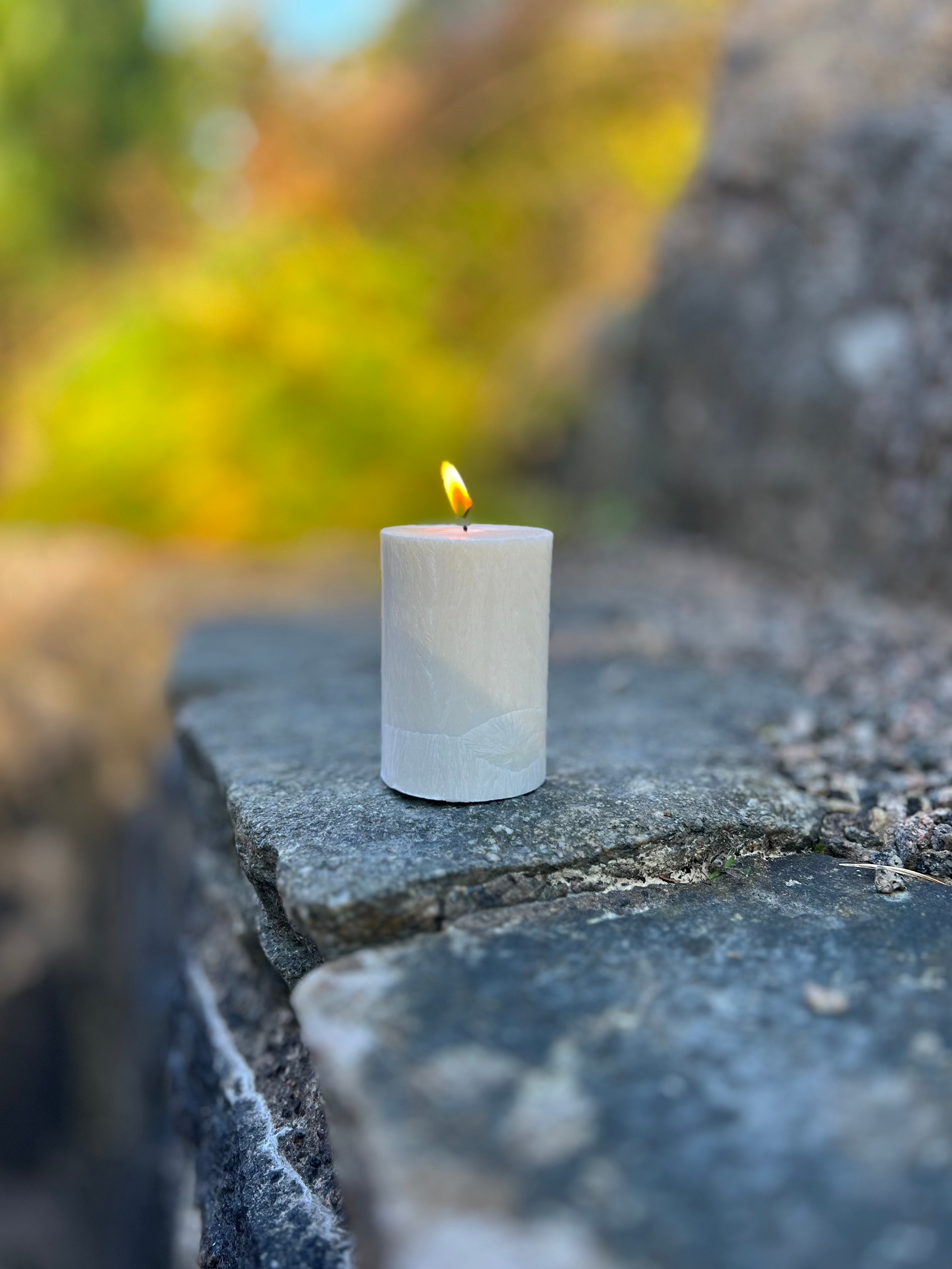 Ett hållbart och 100% växtbaserat ljus i färgen, Vit. Detta ljus är tillverkat av shea-stearin, ett förnybart material som utvinns ur nötter från vildväxande sheaträd i Afrika. Kommer med ett vackert mönster som är unikt för varje ljus. Helt klart ett hållbart och miljövänligt val för alla hem. Perfekt för både vardagsbruk och speciella tillfällen.