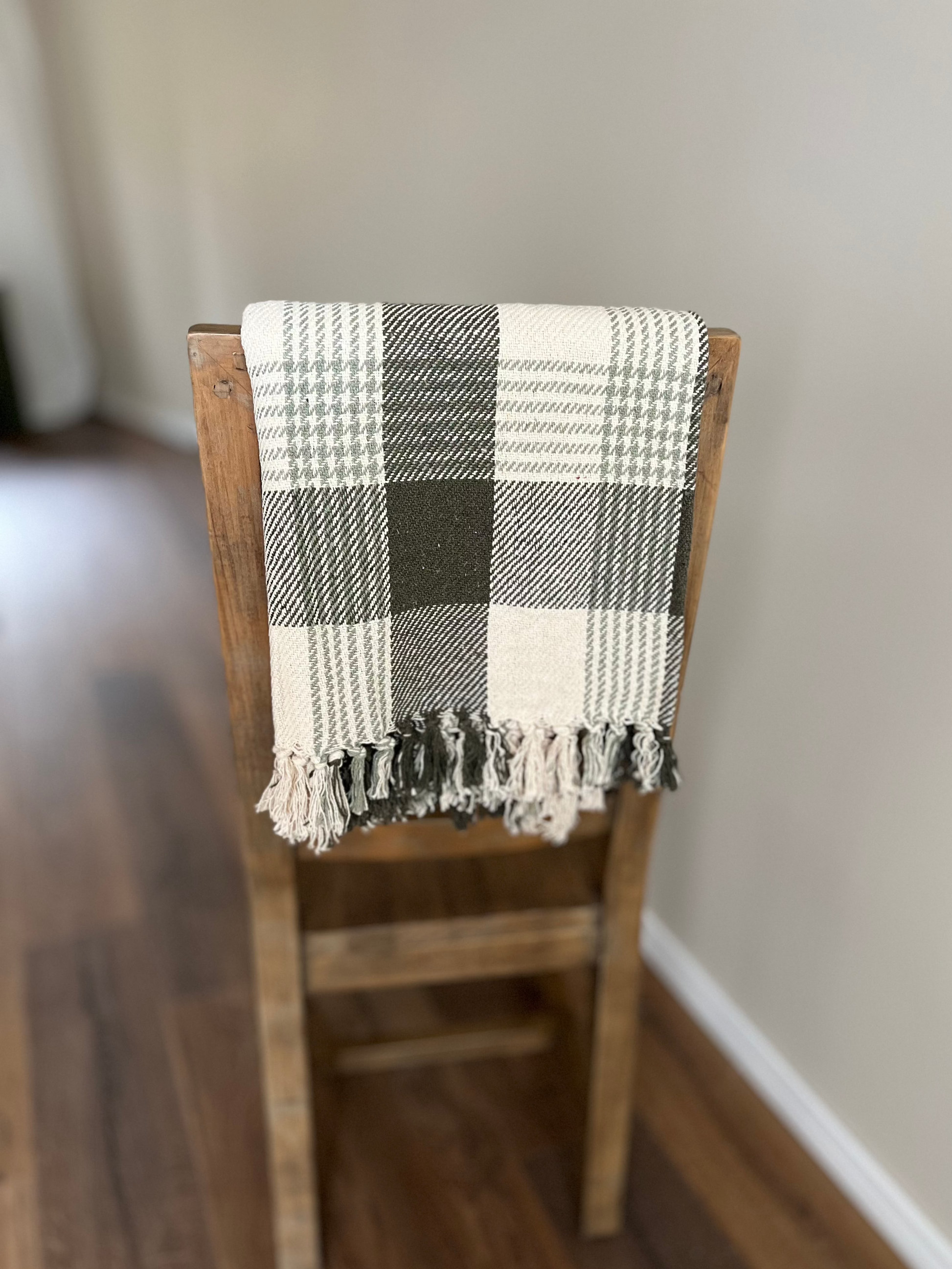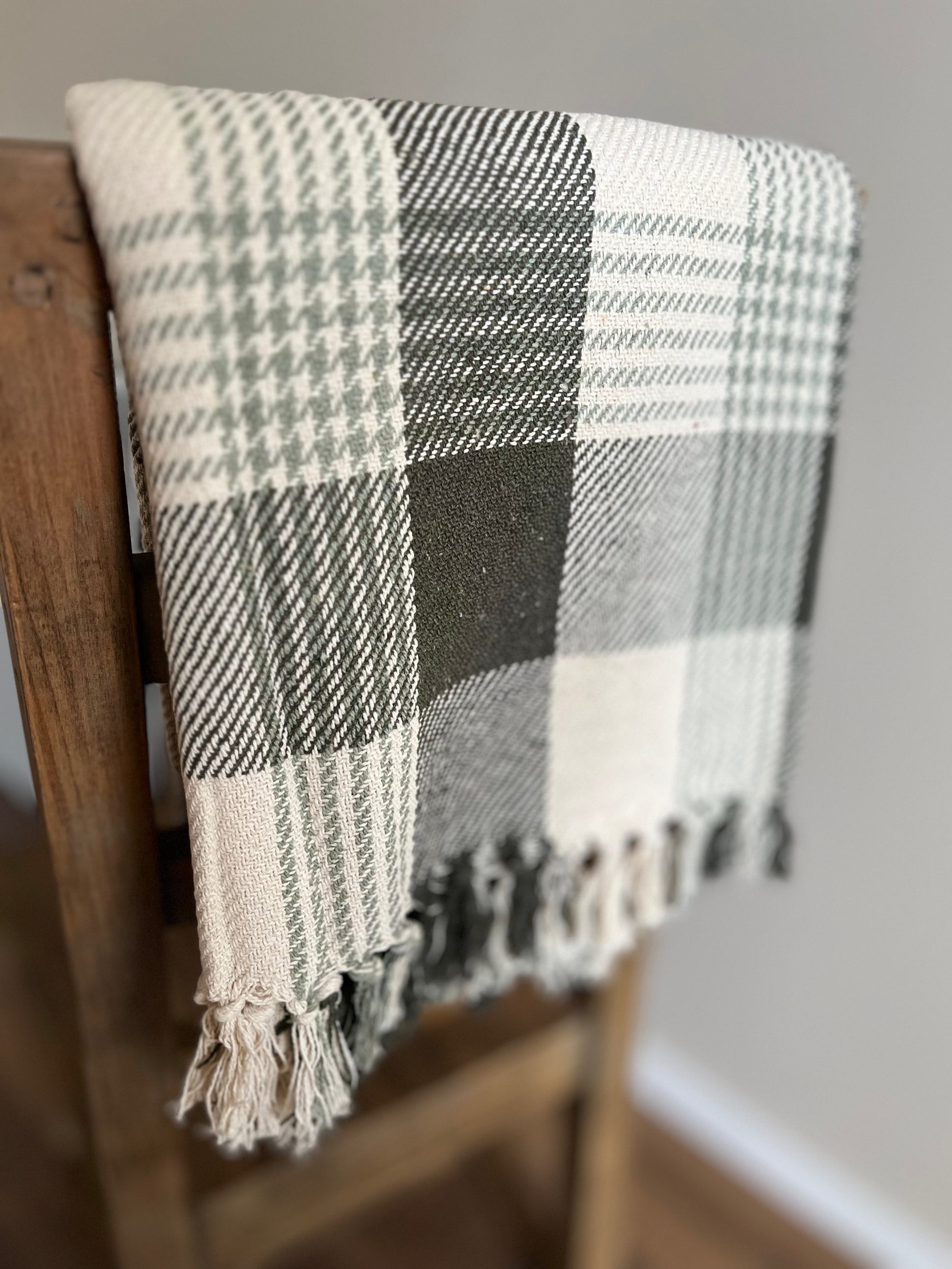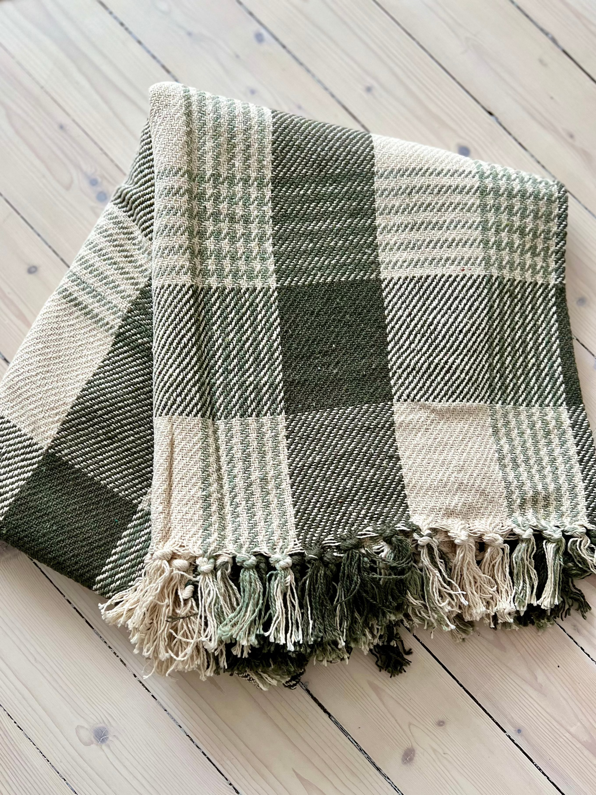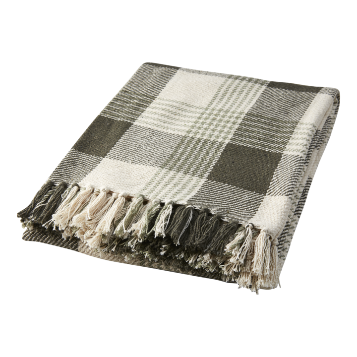 Filt i vackert rutmönster, tillverkad av 100% återvunnen bomull. Perfekt för kalla kvällar eller som en stilren inredningsdetalj.