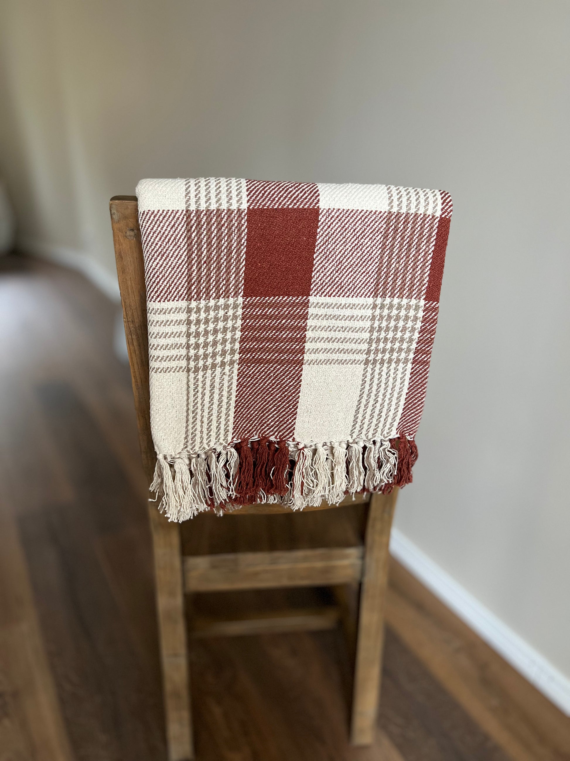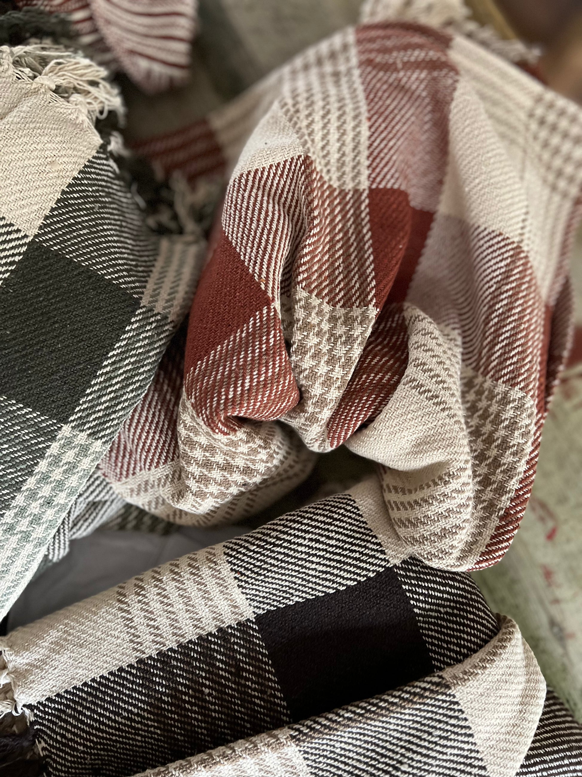 Filt i vackert rutmönster, tillverkad av 100% återvunnen bomull. Perfekt för kalla kvällar eller som en stilren inredningsdetalj.