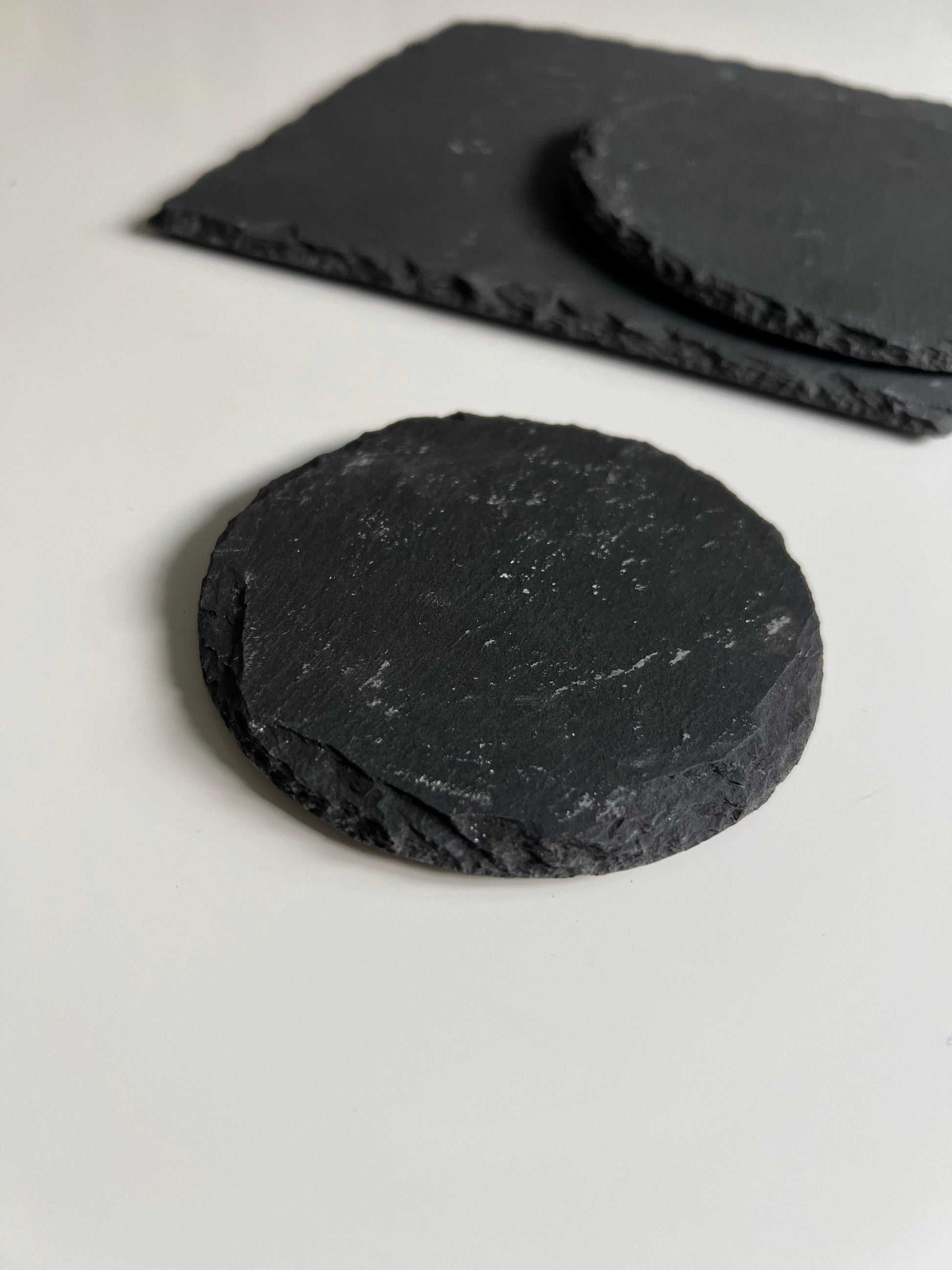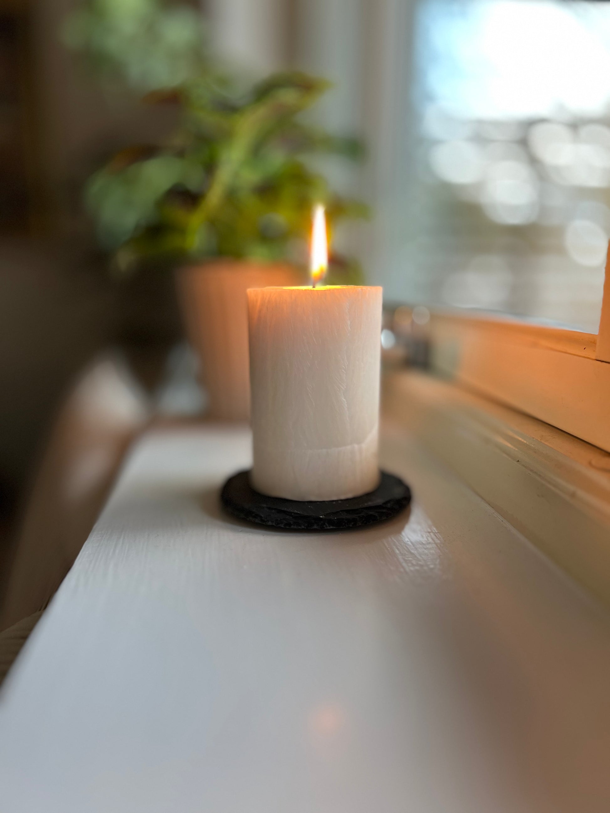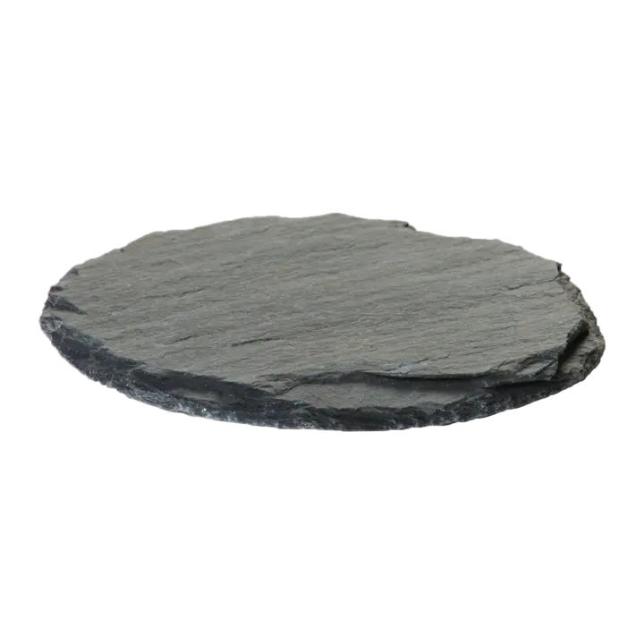 Ett ljusfat med diameter 10 cm i svart skiffer.
