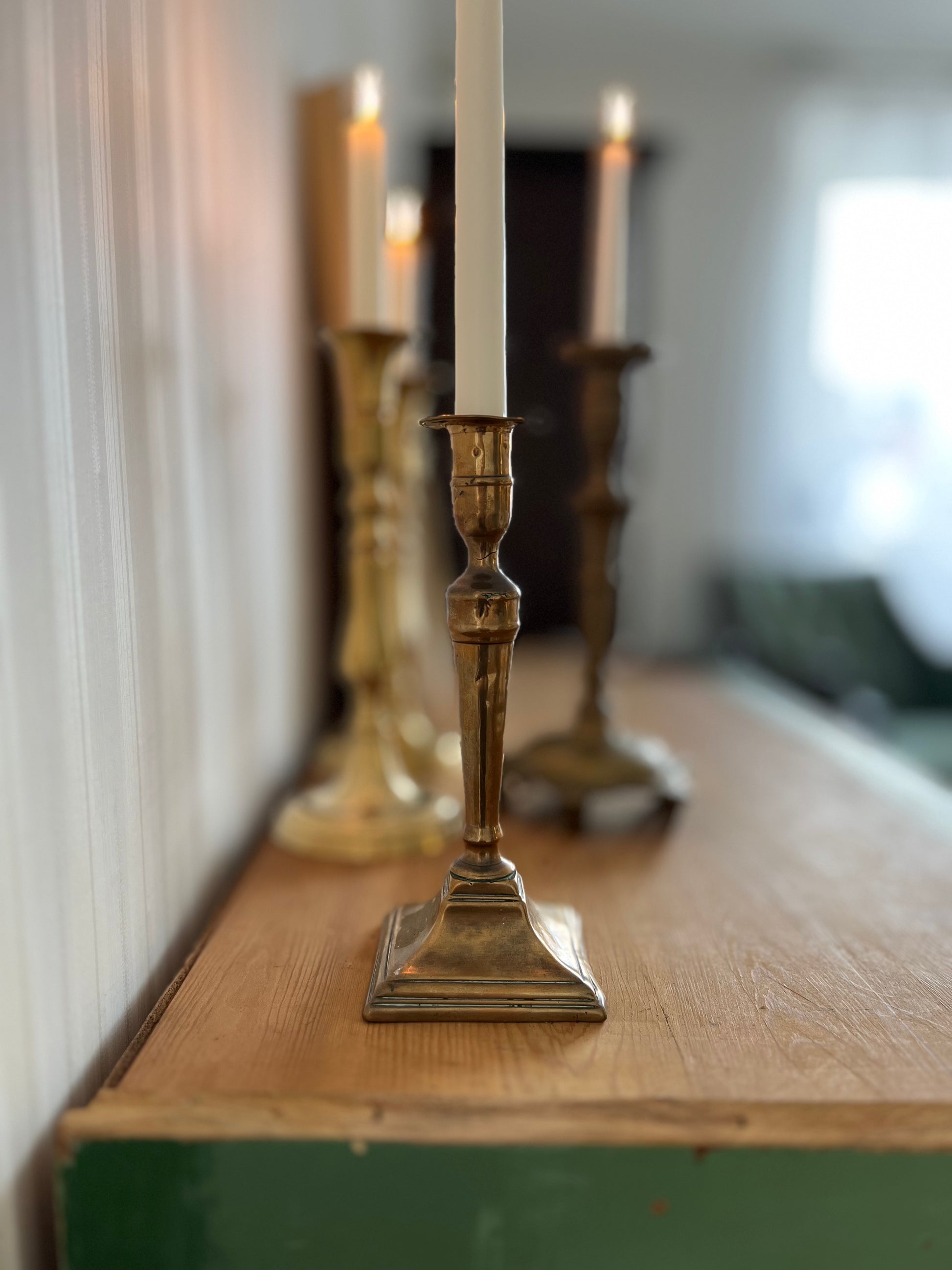 En elegant ljusstake som ger ett nätt och luftigt intryck. Ljusstaken har ett par skav och bucklor.