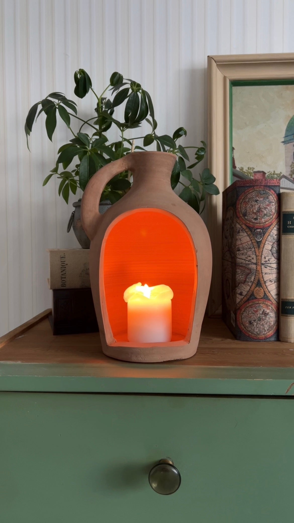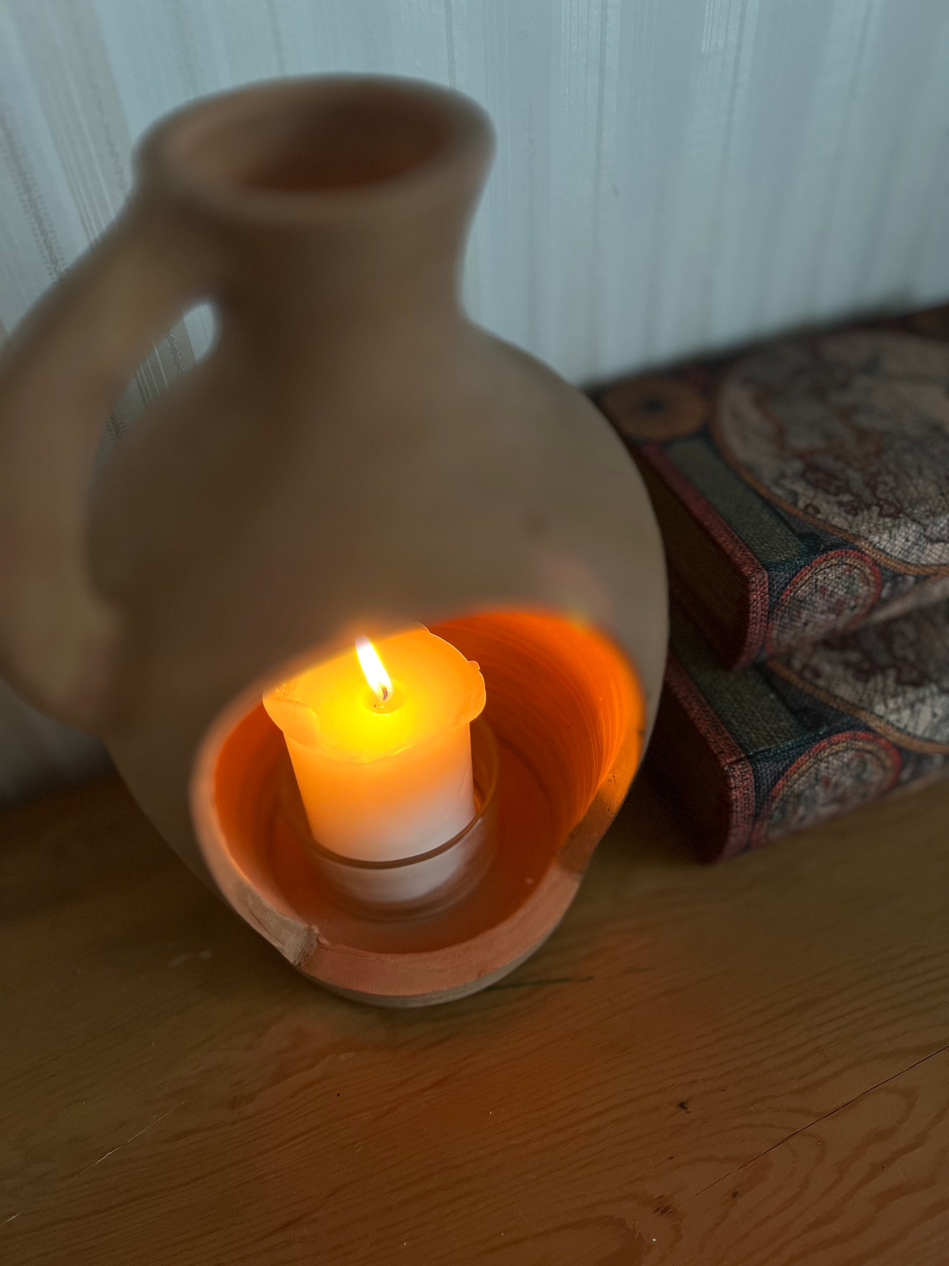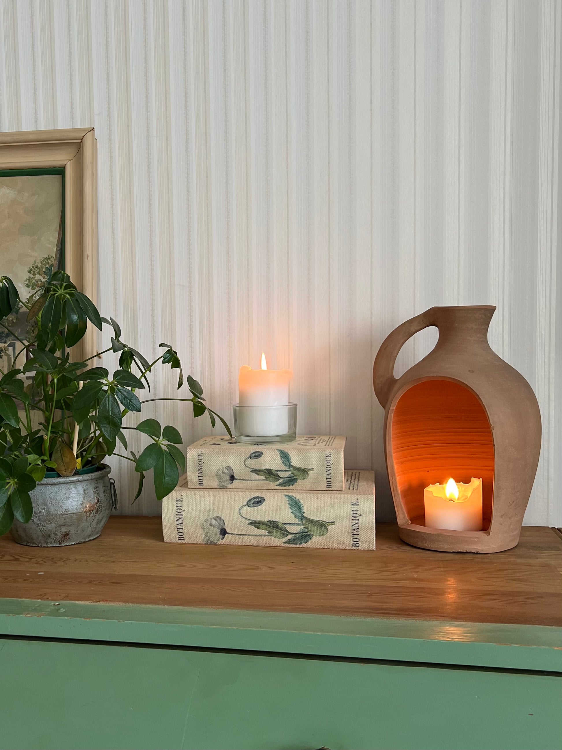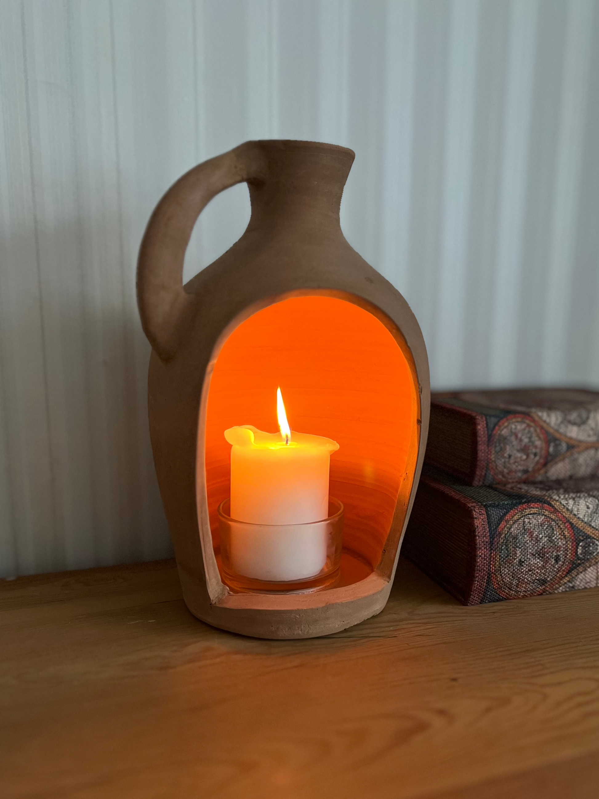 Stilren naturfärgad lykta i gedigen terracotta med praktiskt handtag. Perfekt för att skapa en varm och ombonad känsla.