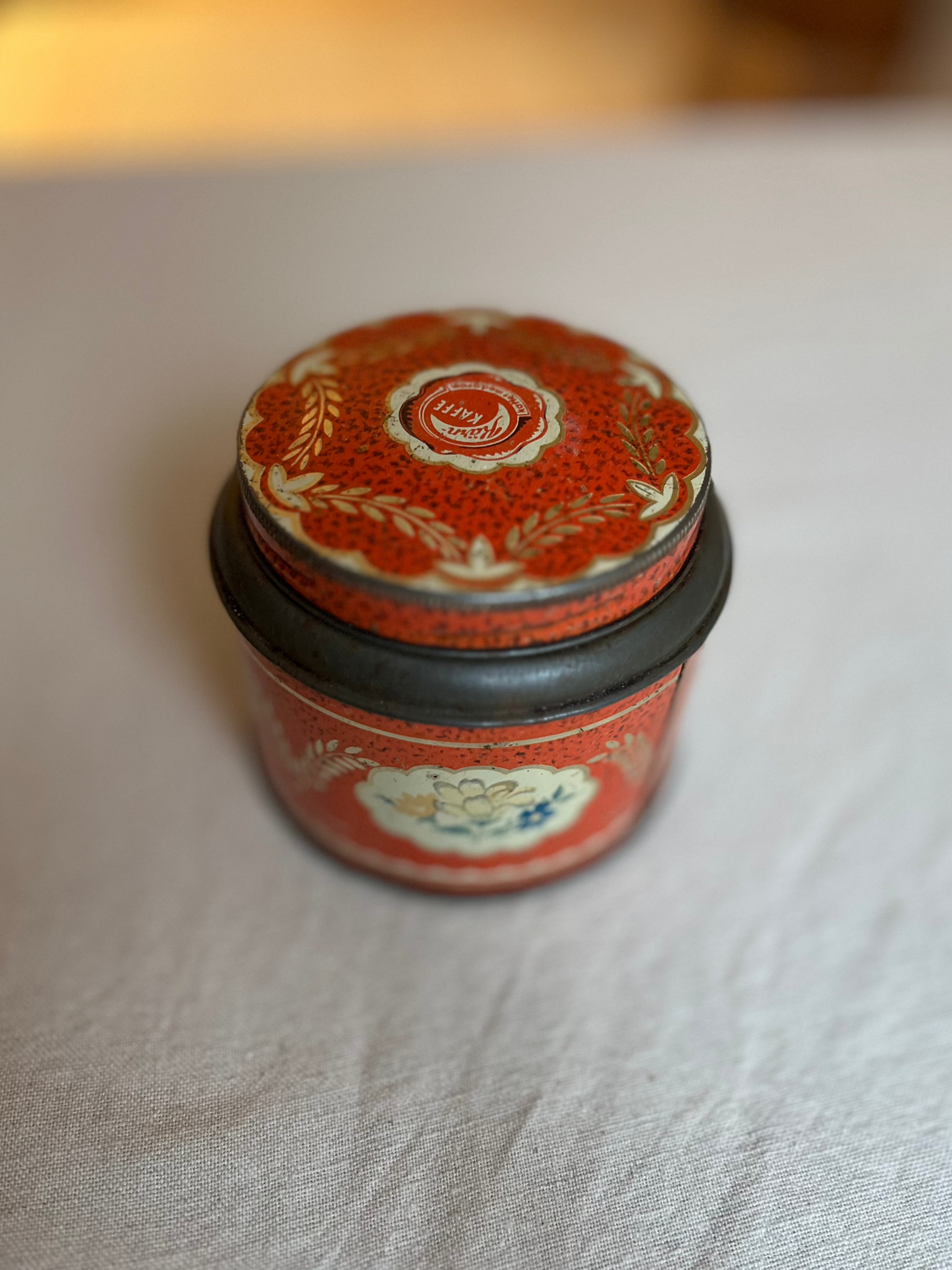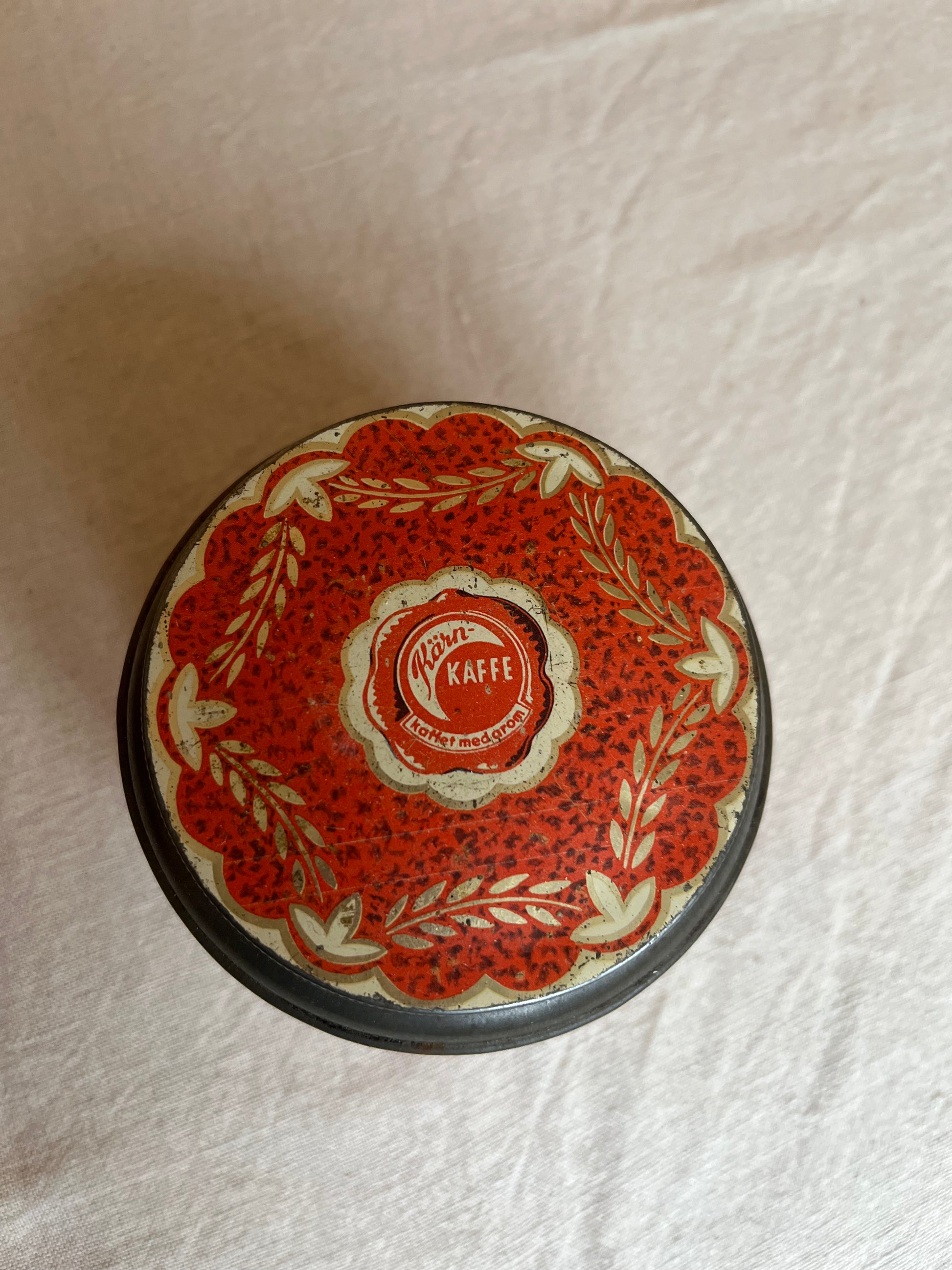 En plåtburk i original från Kärn Kaffe. En charmig burk med naturlig patina.
