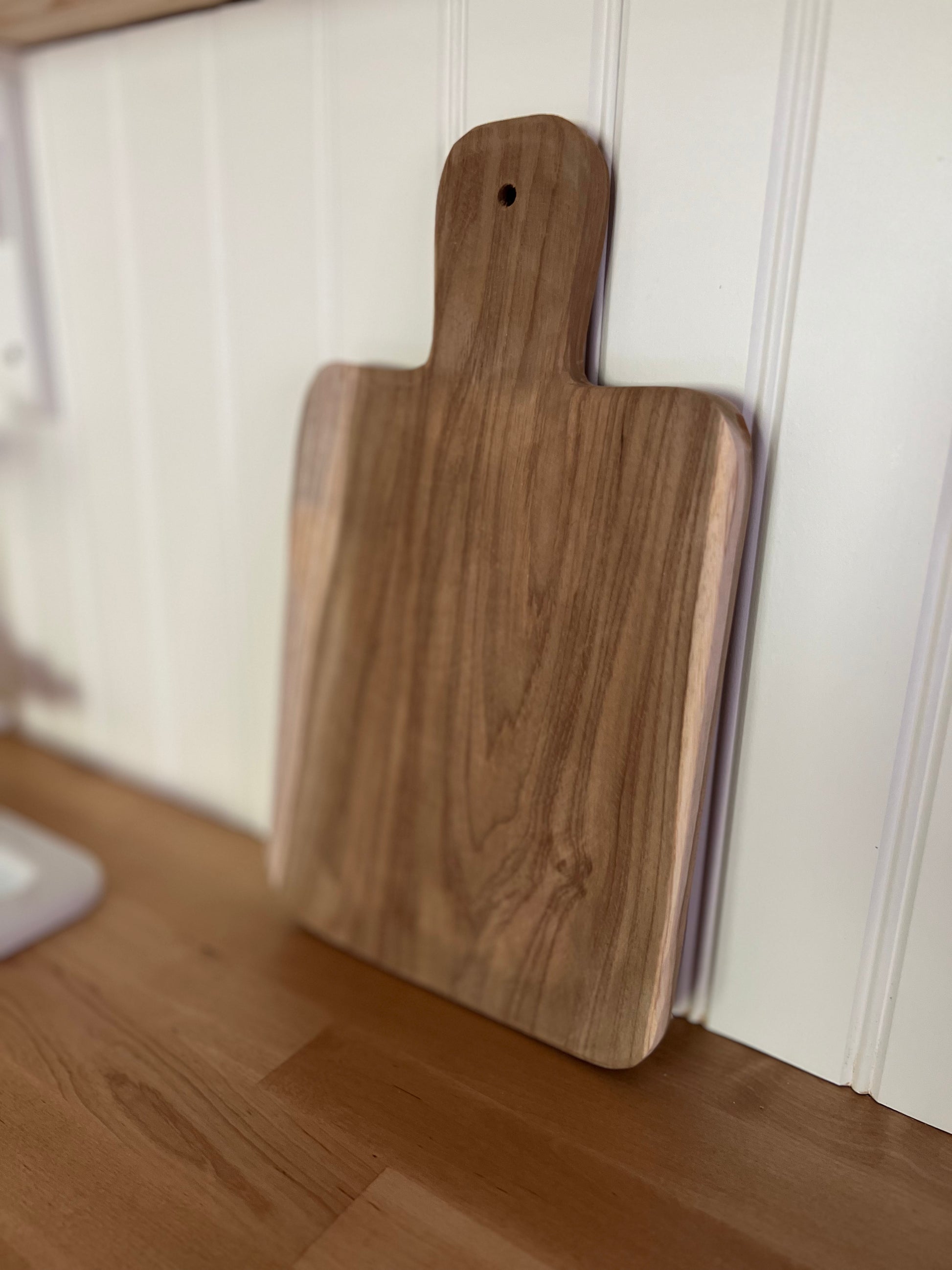 En vacker handgjord skärbräda tillverkad av det miljövänliga materialet Teakrot.