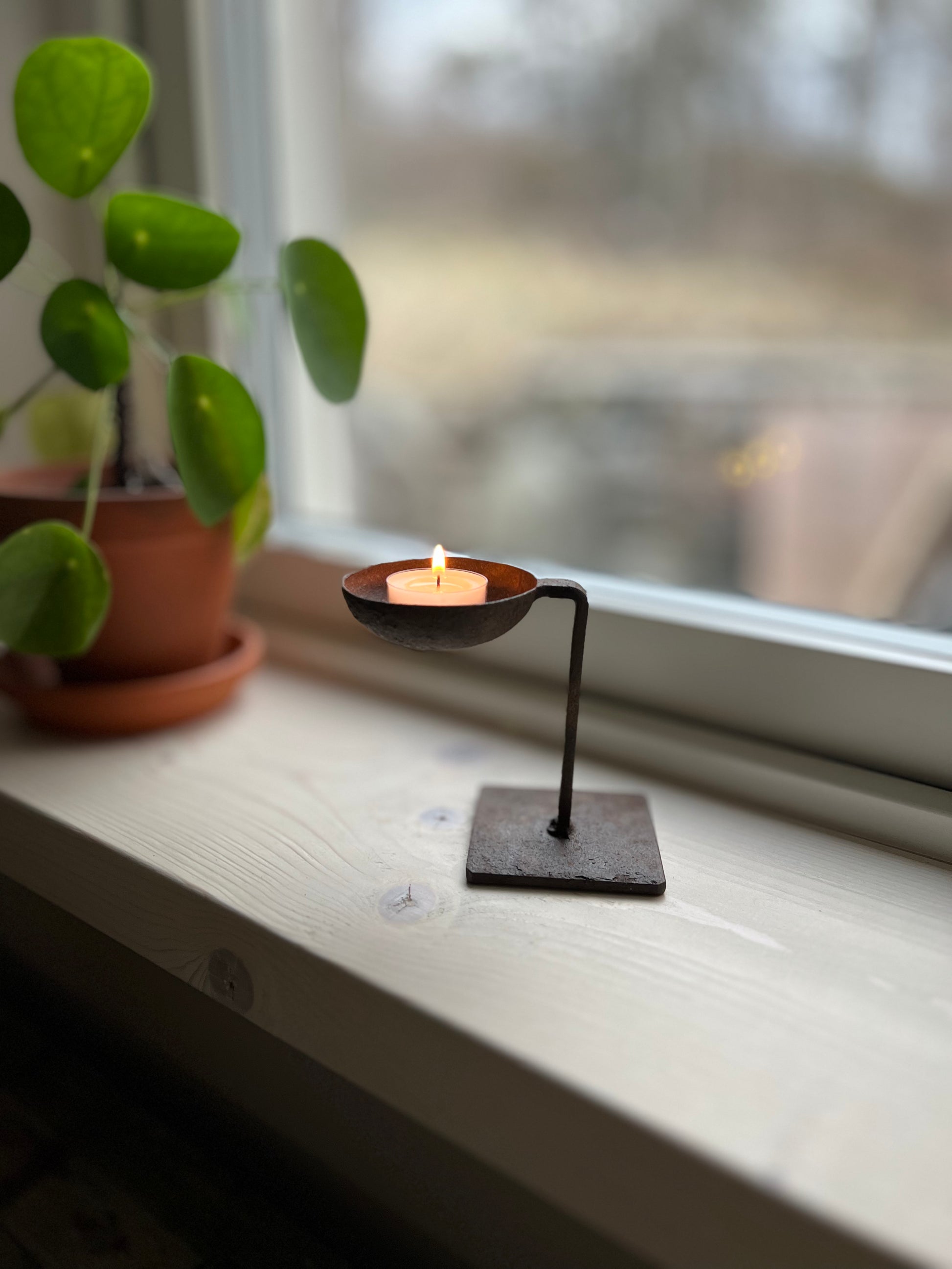 En robust värmeljushållare med charm och karaktär. Perfekt för mysiga kvällar och vackra dukningar.
